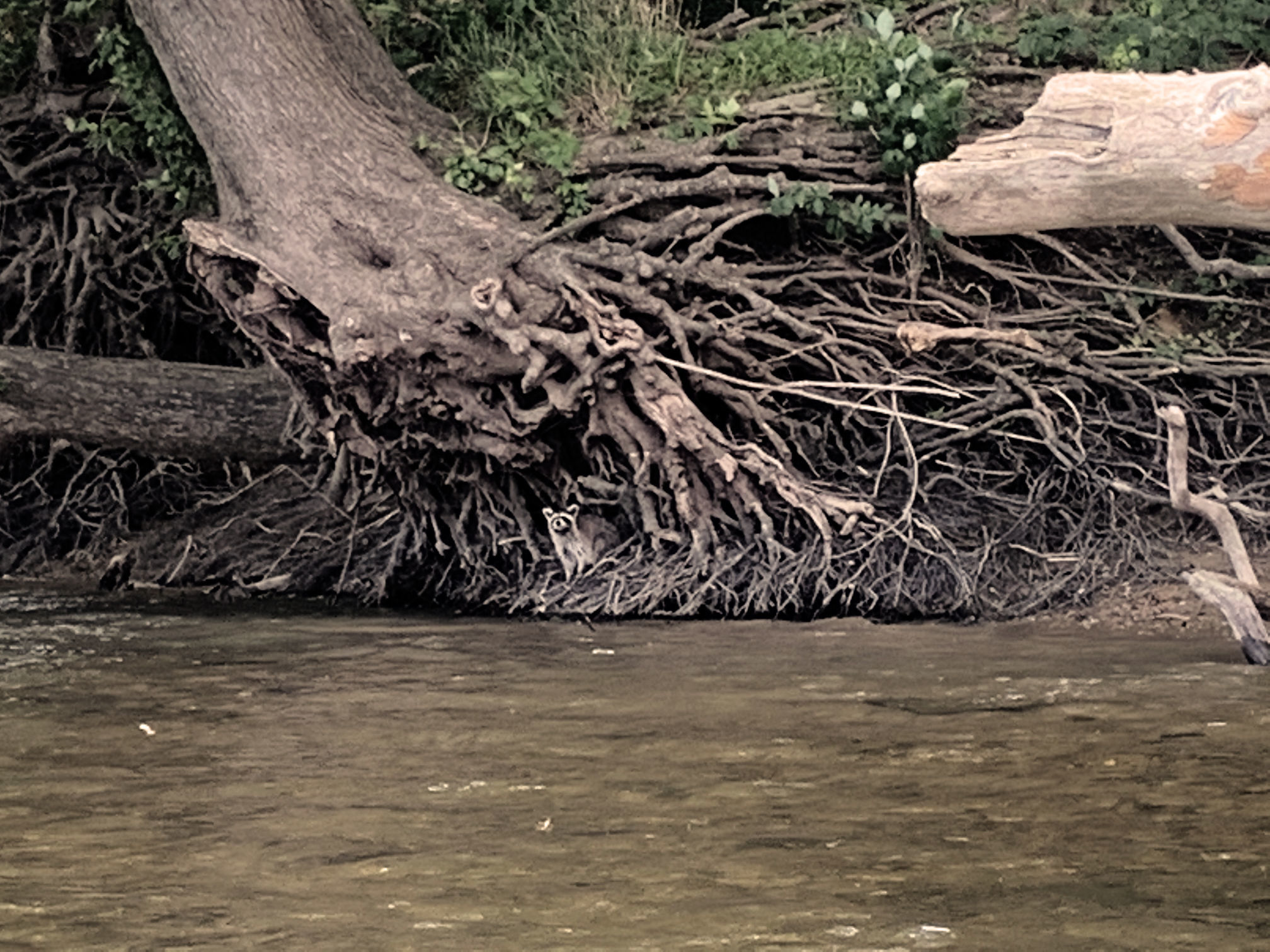 Because of the quiet, the wildlife wasn't hiding as much as it normally did when I've previously been on the river. This time, however, we saw raccoons, and blue herons and so many eagles! If I had to guess we saw at least a dozen of the eagles swooping along the treetops.